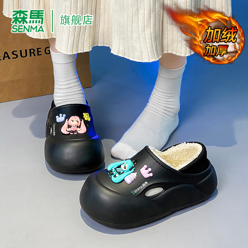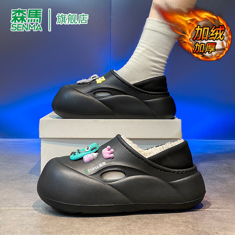 女踩屎感防滑加绒保暖拖鞋 人本冬季 厚底可外穿拖鞋 包头棉拖鞋 男士