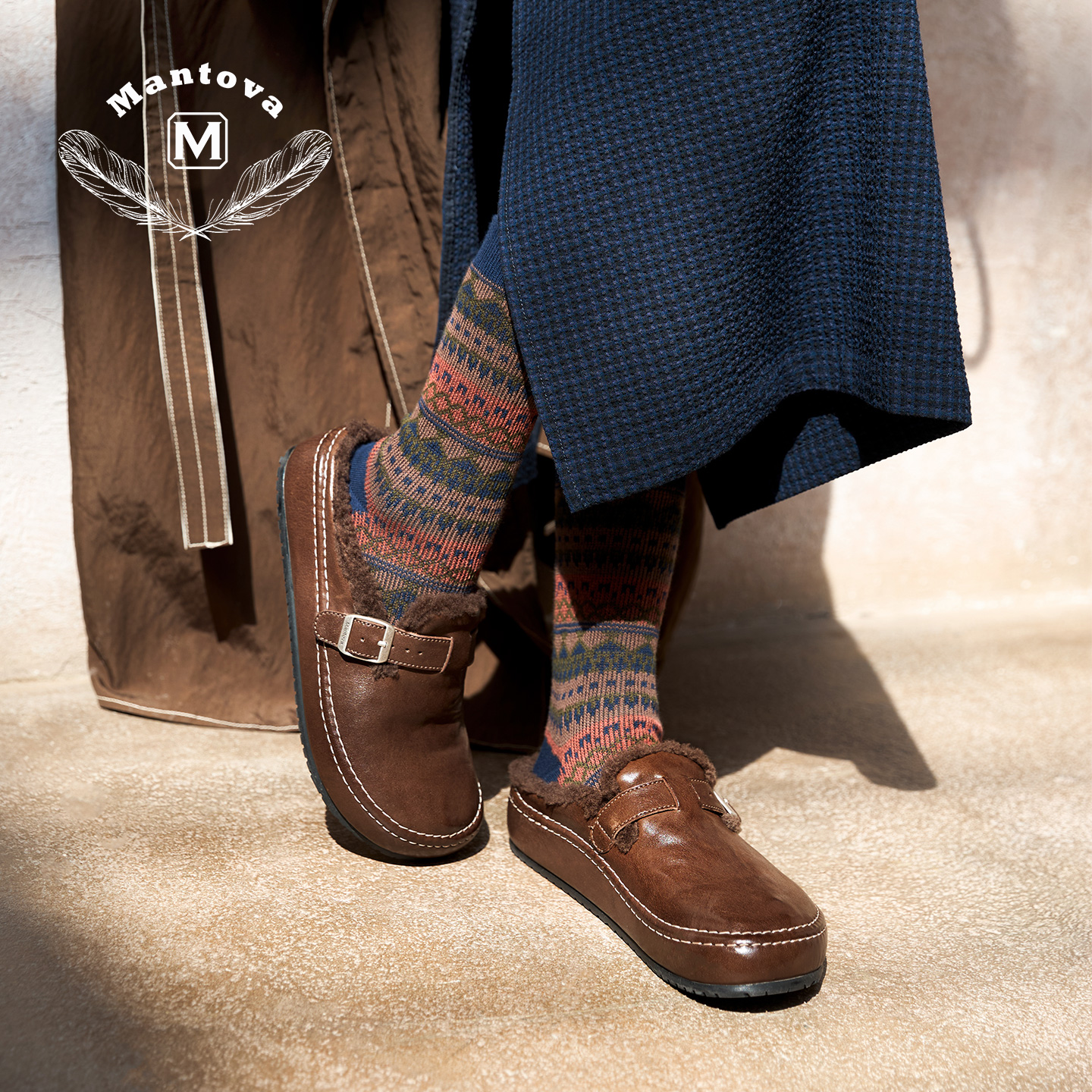 真皮 一脚蹬懒人博肯鞋 春秋勃肯鞋 女包头孕妇半拖外穿2025复古新款