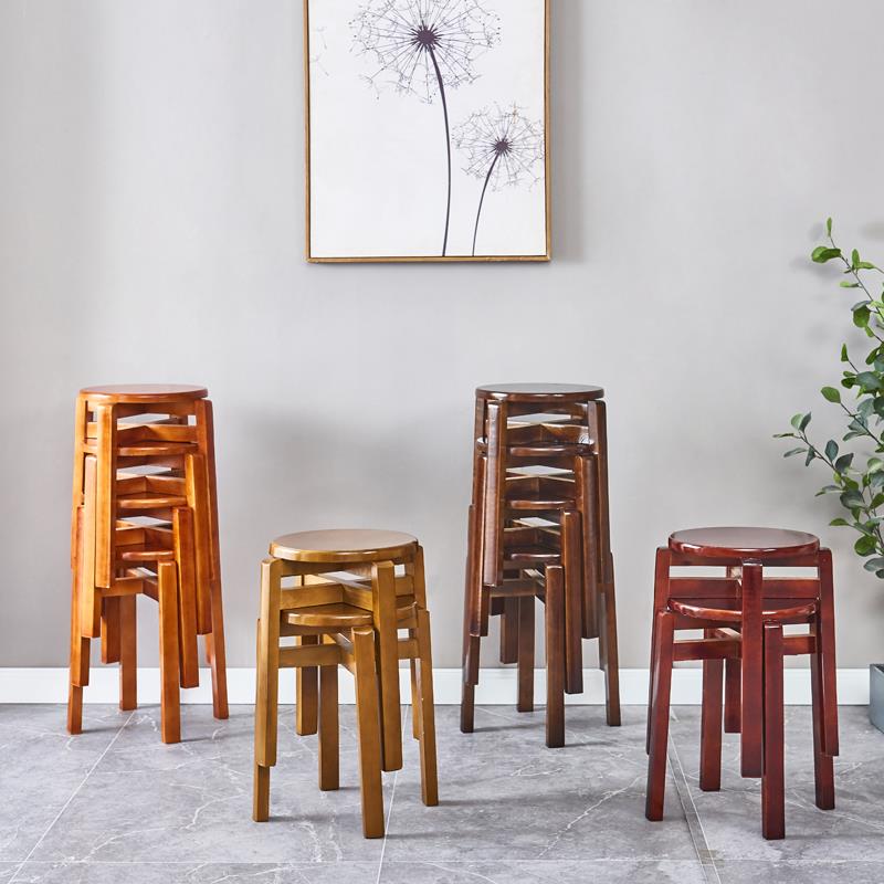 实木圆凳家用餐桌中式 板凳 仿古橡木椅子现代简约可叠放易收藏换鞋