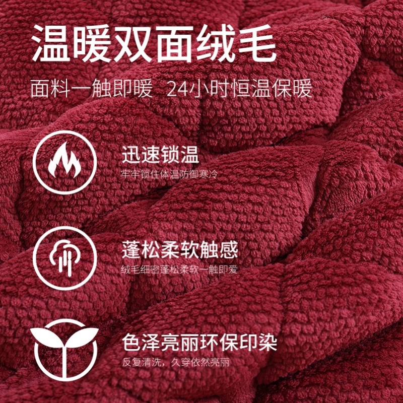 男士 家居服套装 中厚抗静电薄绒开衫 红豆暖暖绒海岛绒睡衣女秋冬款