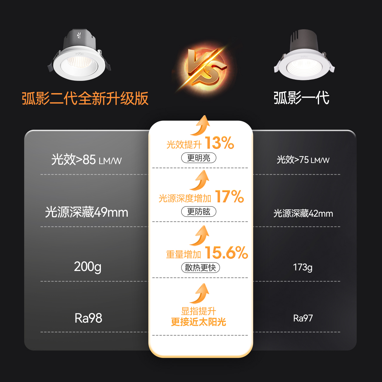 雷士照明嵌入式 led射灯家用客厅吊顶高显防眩可调小山丘射灯弧影
