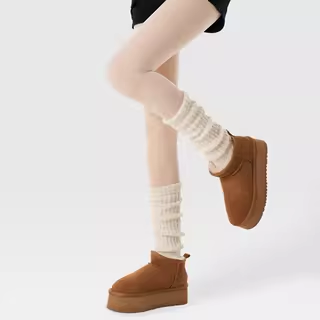 纯棉中筒棕咖色堆堆袜配勃肯鞋 2025新款 长袜 秋冬季 木耳边袜子女款