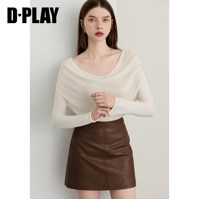 复古修身 棕色半身裙女时尚 裙子皮裙半裙短裙 新款 DPLAY2025年秋季