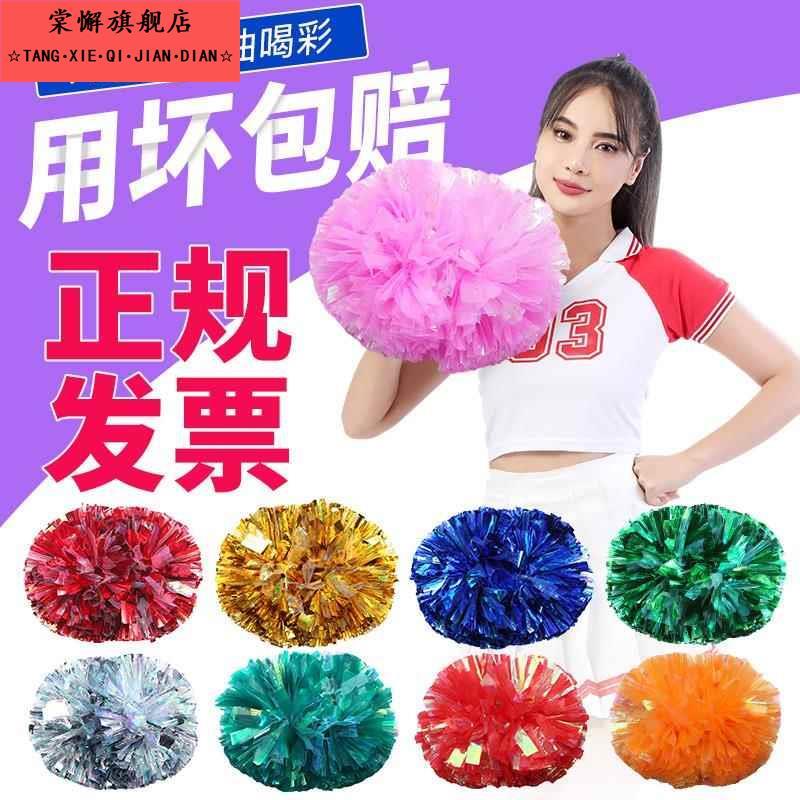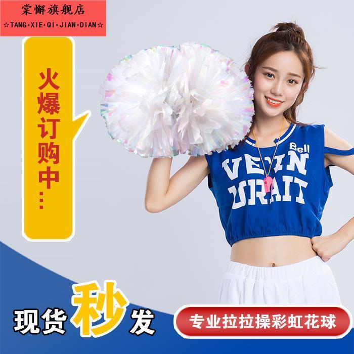 彩虹七彩花球亚光拉拉队手花啦啦花球运动会健美操舞蹈彩球道具