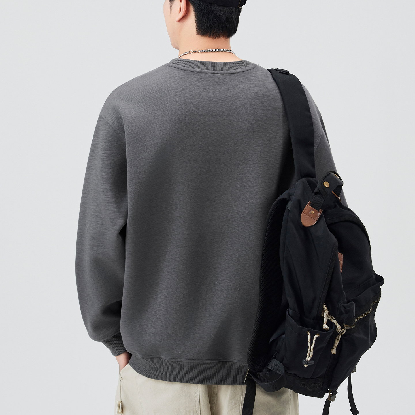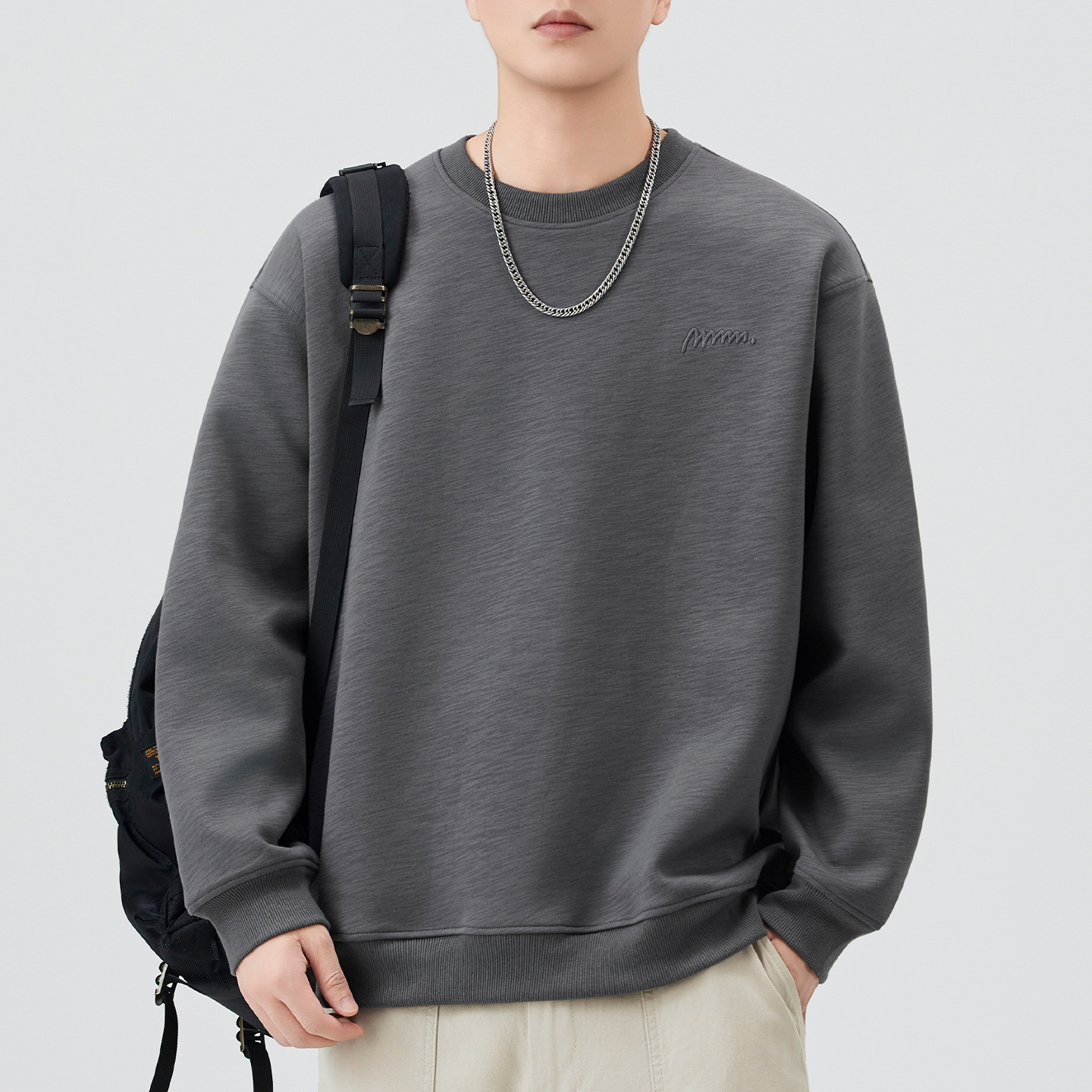 男装 重工刺绣上衣休闲外套2025新款 深灰色圆领重磅卫衣男秋季 男士