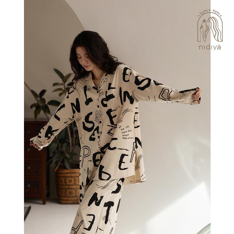 简约女士家居服套装 宽松新款 果壳冰丝睡衣女春秋款 Gukoo