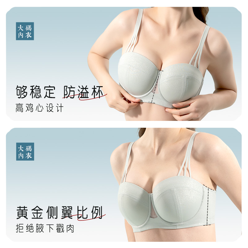 猫人内衣女士胸大显小收副乳聚拢上托防下垂无痕大码 美背心文胸罩