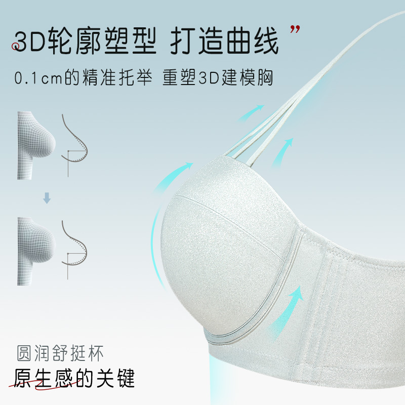 ubras妥妥杯加固防滑无肩带内衣美背大胸显小抹胸聚拢隐形文胸罩