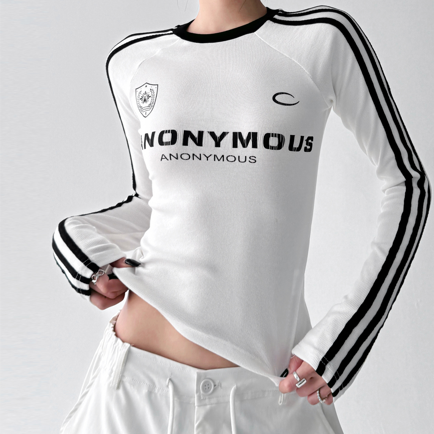 条纹拼接运动打底衫 2025超火秋装 T恤女早秋新款 长袖 上衣 辣妹修身