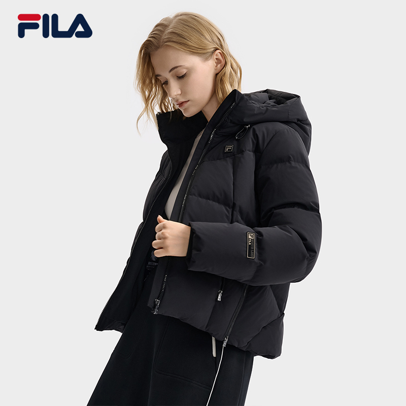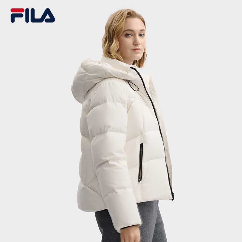 棉羽连帽外套 保暖鸭绒中长款 FILA斐乐官方女士羽绒服冬季 运动时尚
