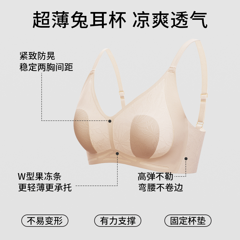 ubras兔耳杯大胸显小内衣收副乳防下垂薄款 无痕全杯文胸罩女秋季