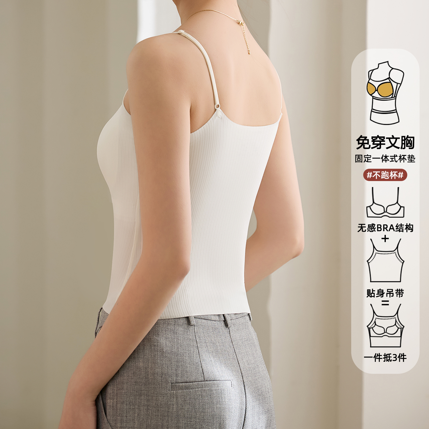 吊带背心女内搭带胸垫2025秋冬外穿白色打底美背文胸一体无袖 上衣