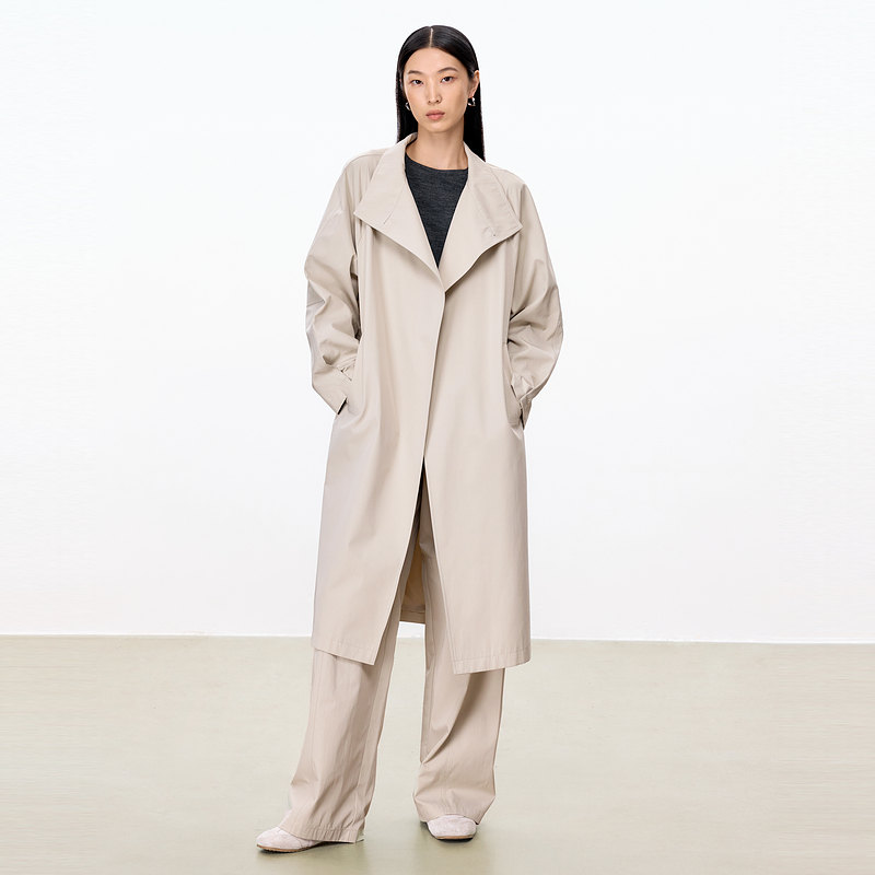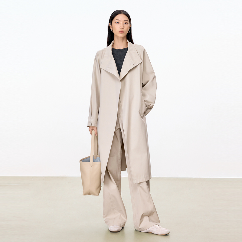 新款 水云间女装 风衣外套2025秋季 英伦风宽松简约浴袍式 立领时尚