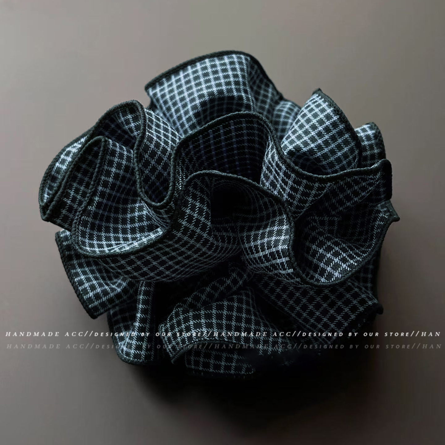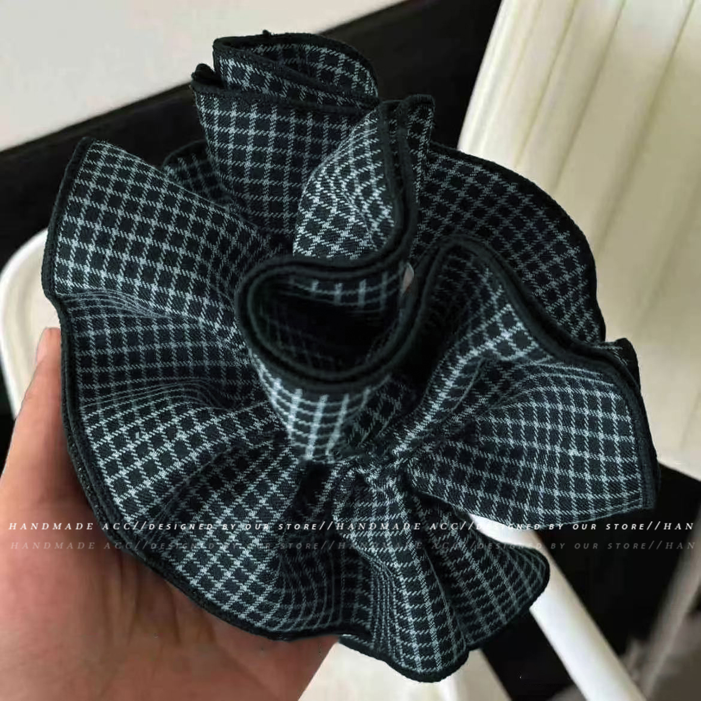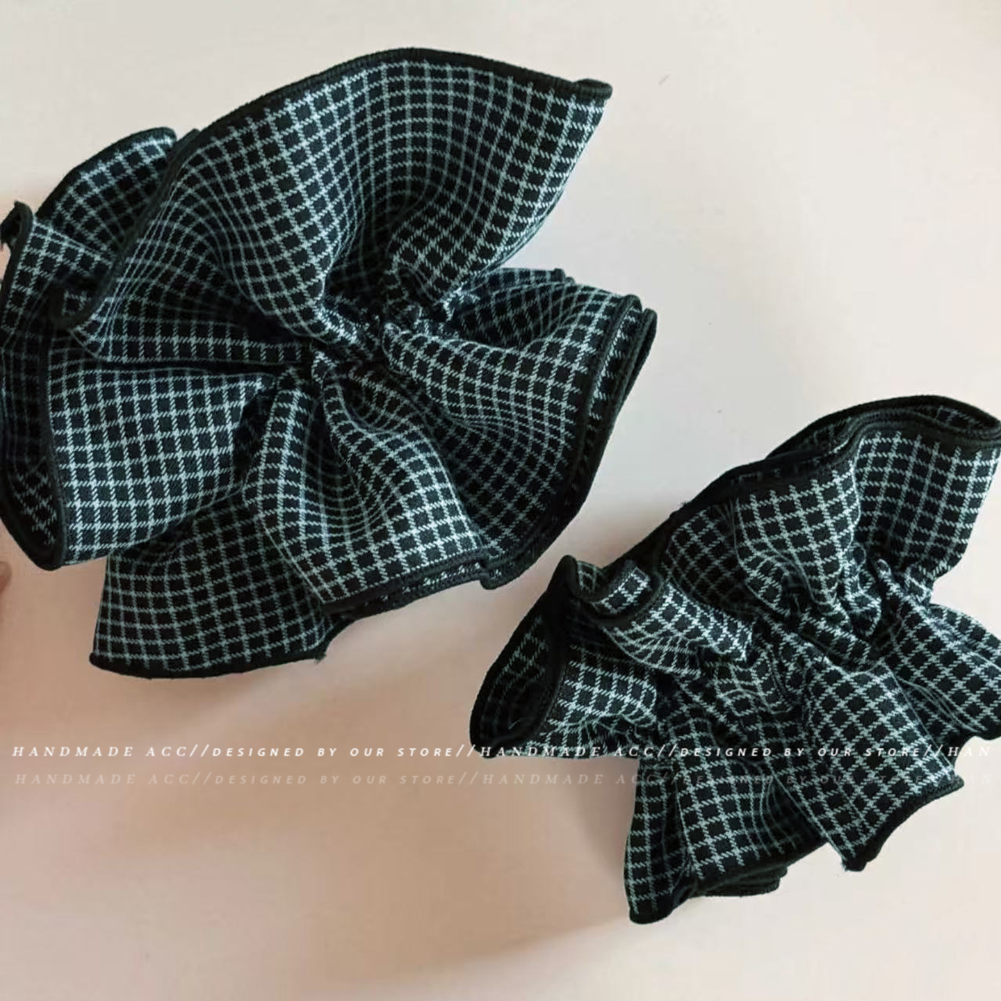 小众撞色双层格子花边大肠发圈ins风低马尾高级感扎头绳森系头花