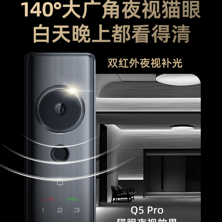 凯迪仕Q5Pro智能门锁猫眼指纹密码 锁家用入户门防盗门智能锁夜视