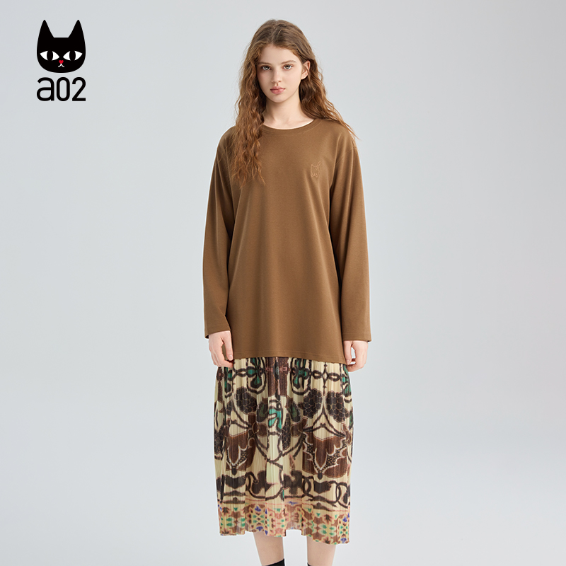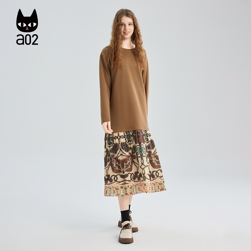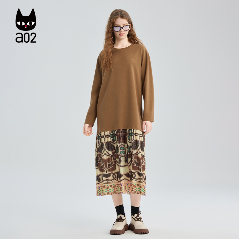 气质显瘦中长款 时尚 新款 连衣裙女2025年秋季 开叉裙子 褶皱拼接长袖