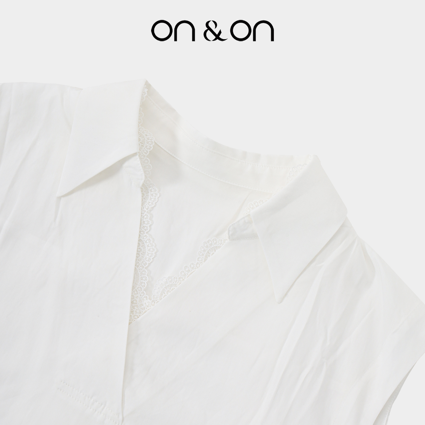 莱赛尔韩系通勤休闲系带收腰蕾丝小衫 新款 安乃安2025夏季 ON&ON