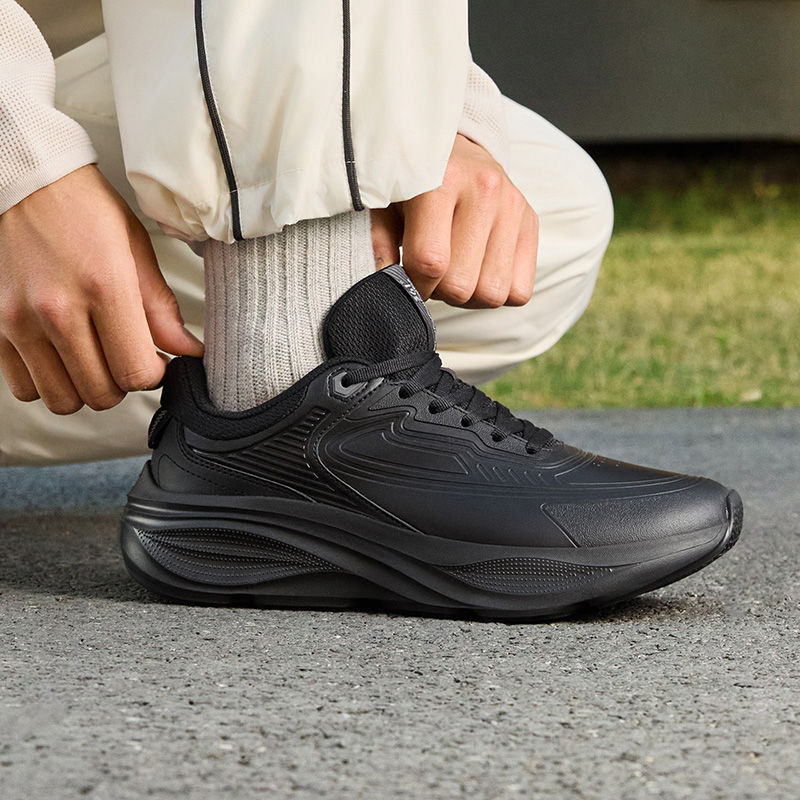 减震厚底运动鞋 轻便跑鞋 皮面防水黑色通勤鞋 361星云男跑步秋季