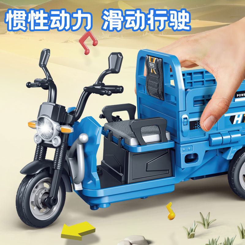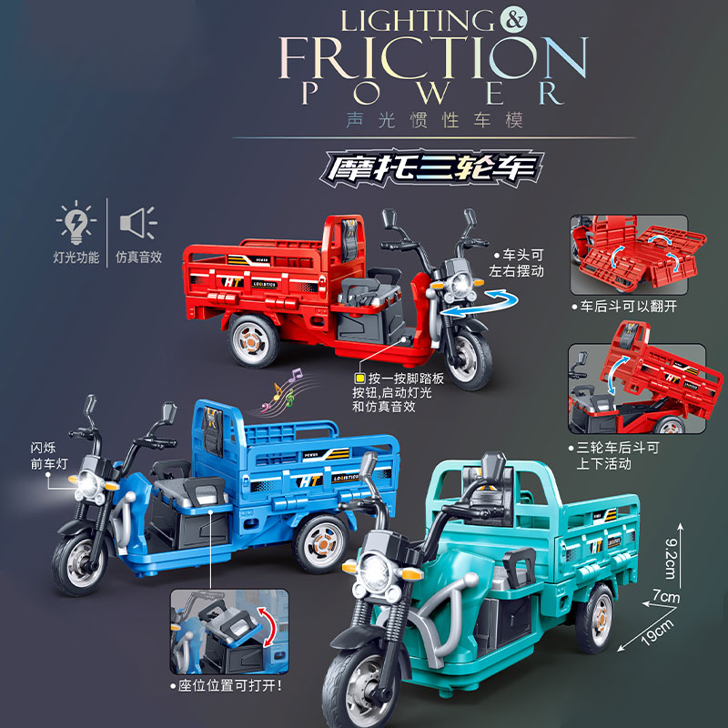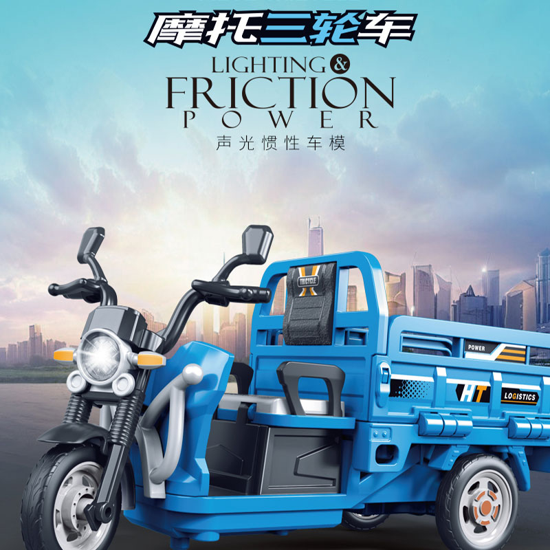 儿童声光仿真三轮车男孩玩具汽车惯性摩托车三蹦子拉货快递车模型