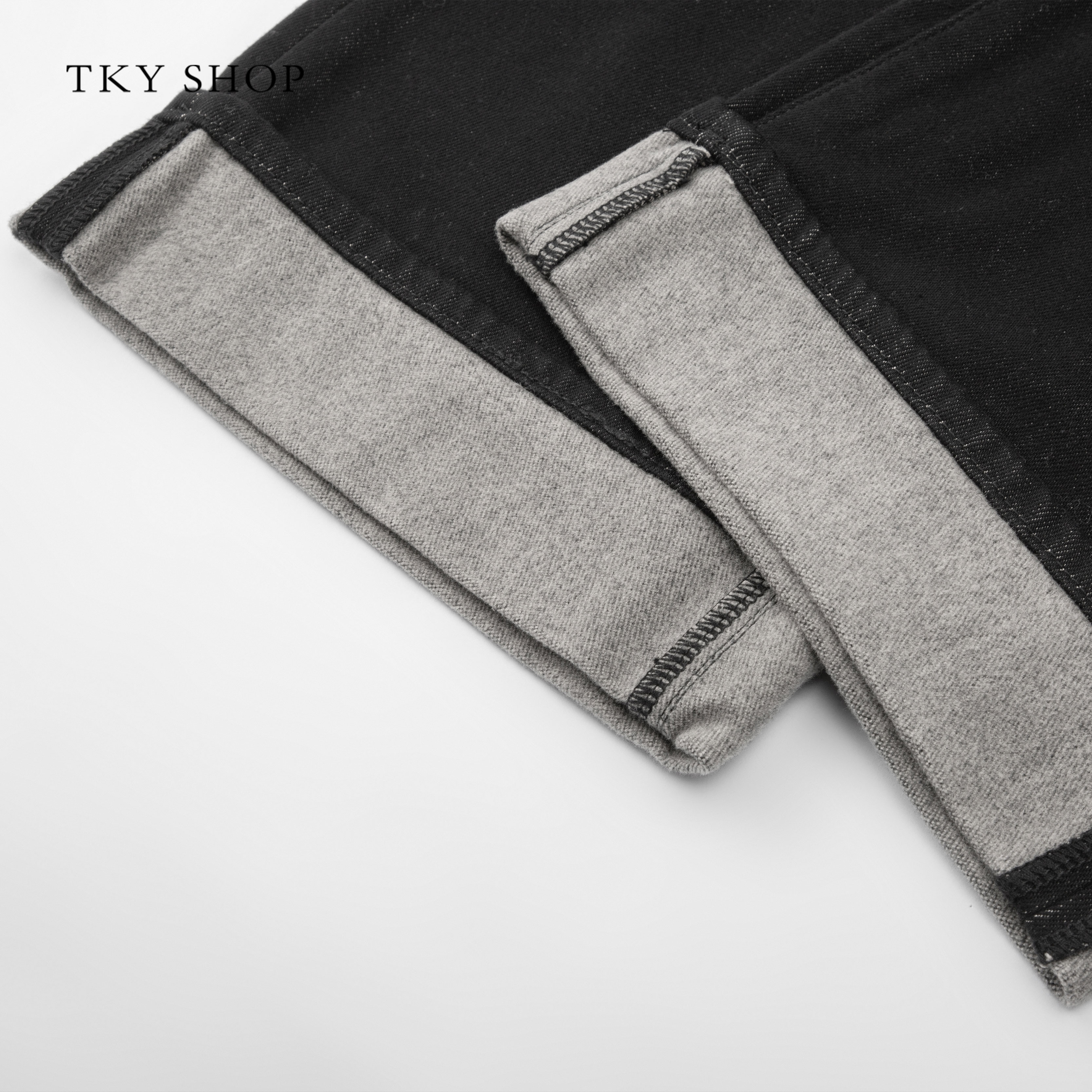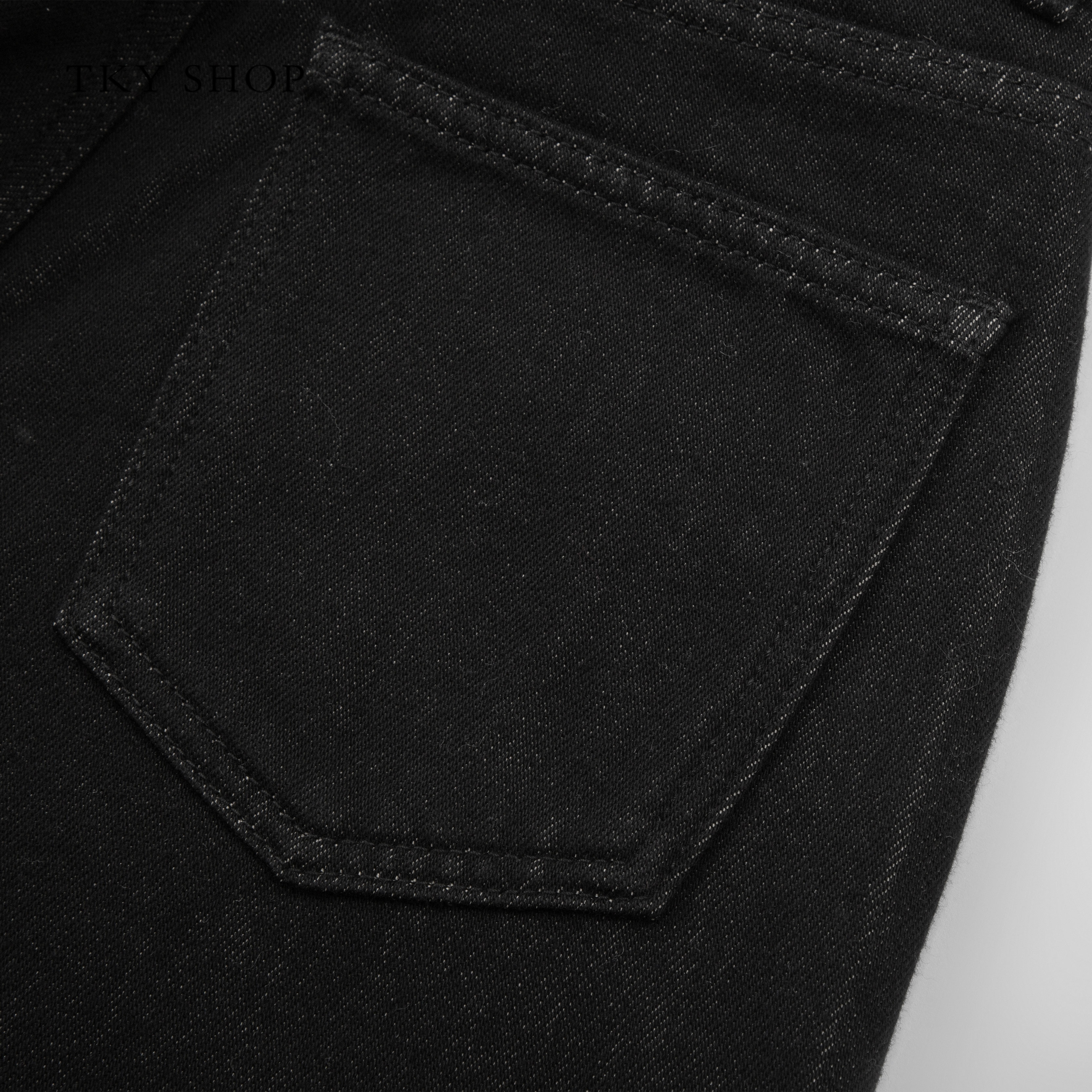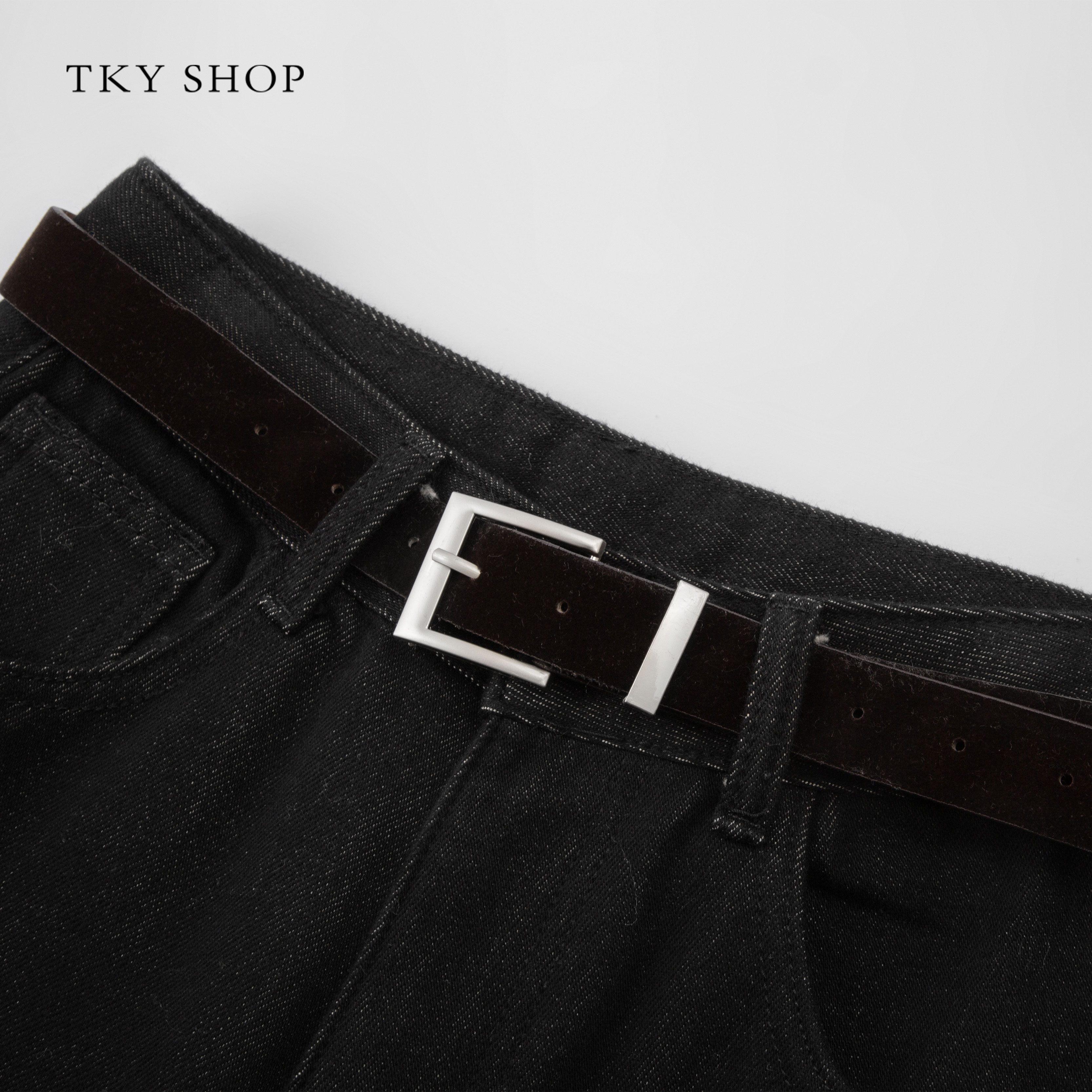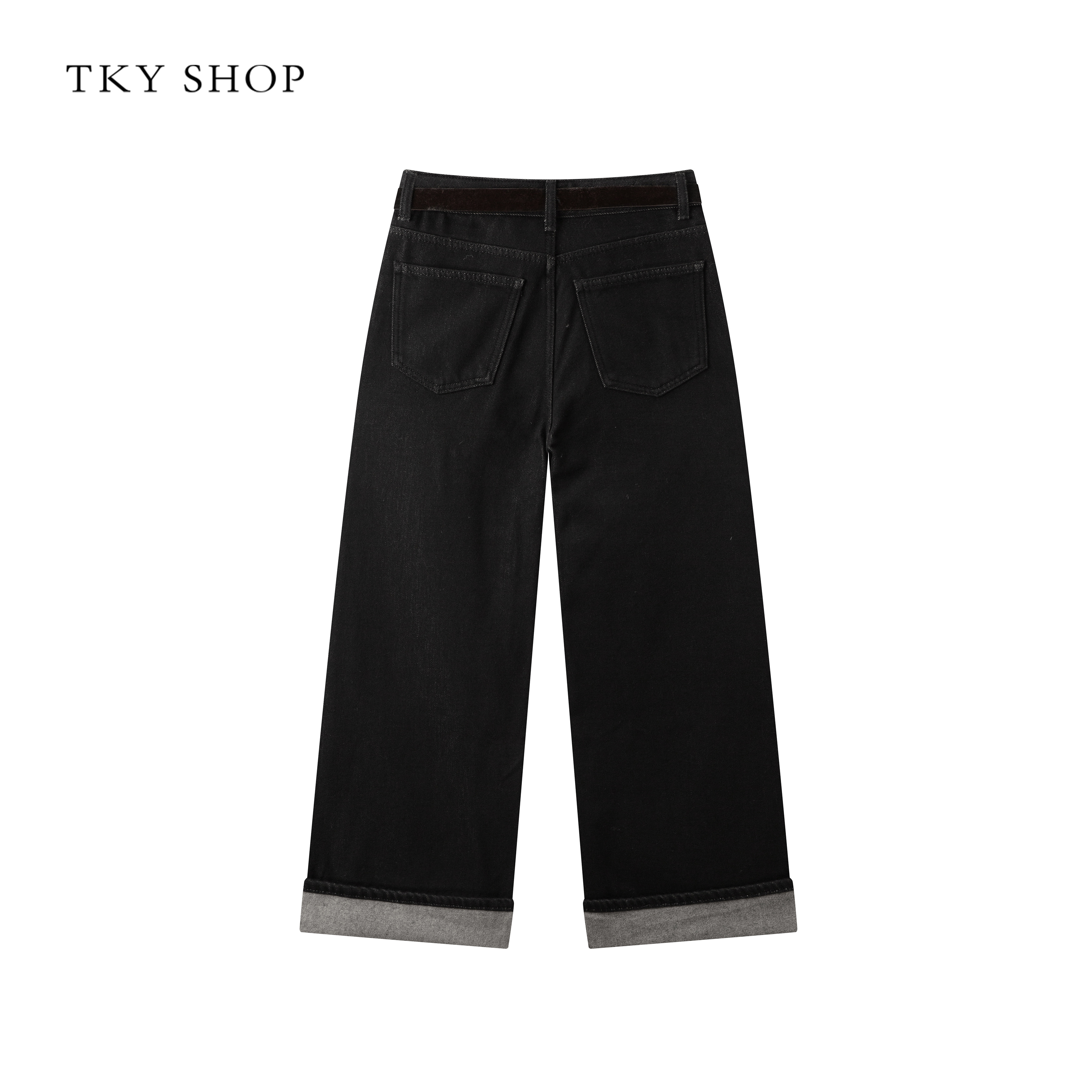 送皮带 气质休闲阔腿裤 TKY 女2025秋新款 复古 SHOP黑色直筒牛仔裤