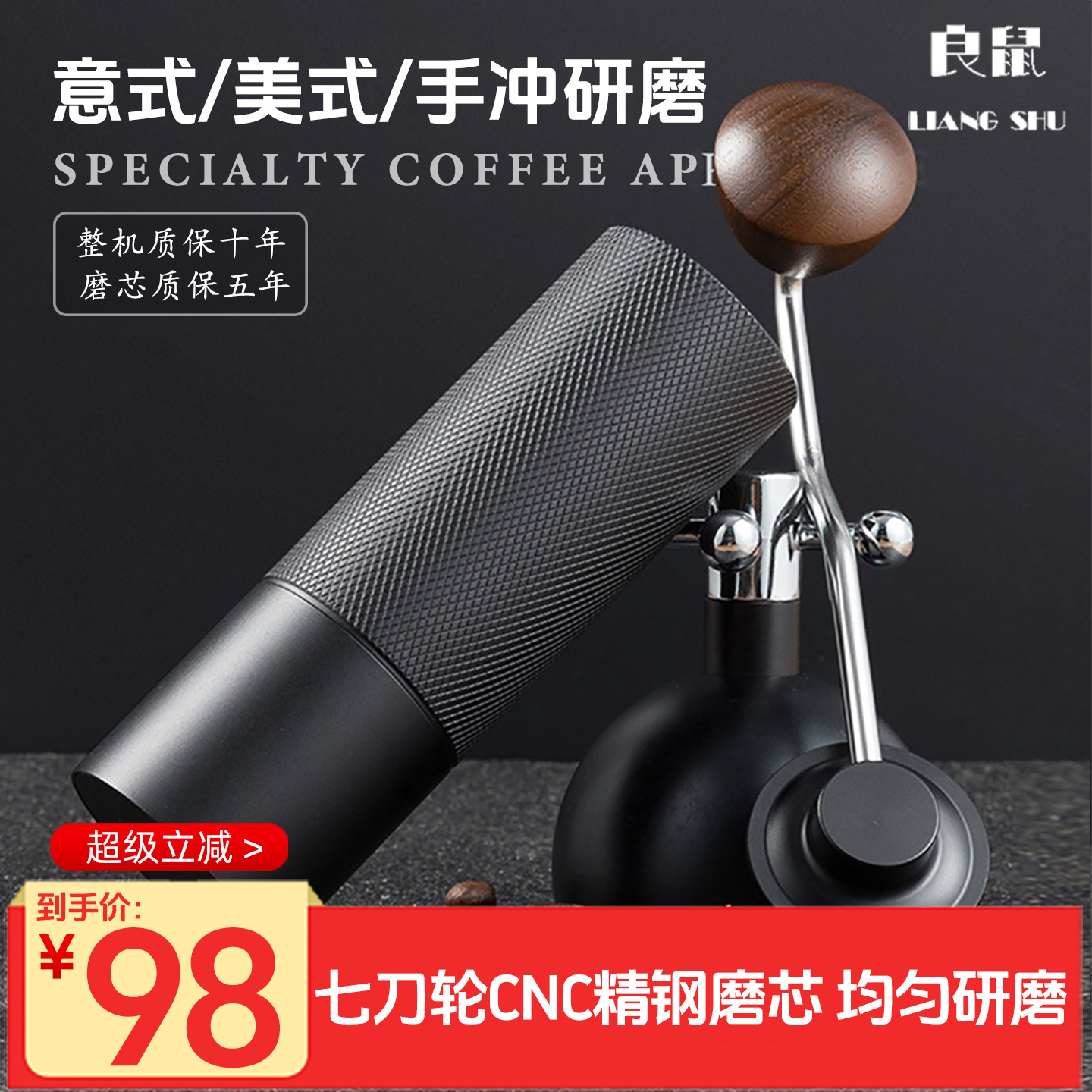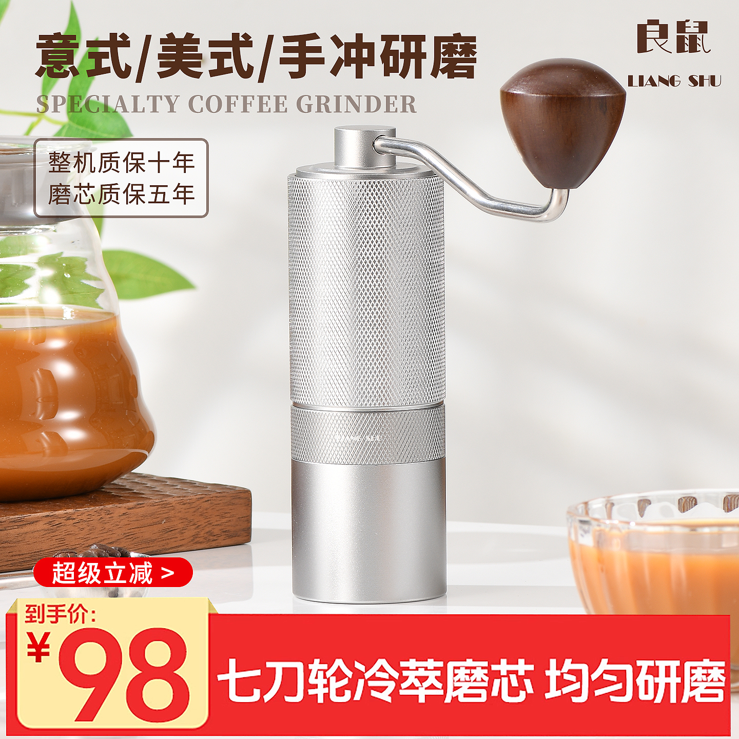 良鼠手摇磨豆机咖啡豆研磨机手冲咖啡套装 家用手动研磨器具手磨