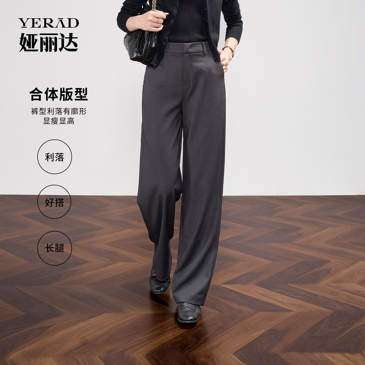 子西装 休闲裤 裤 窄版 娅丽达黑色垂感直筒裤 显瘦阔腿裤 女2025秋新款