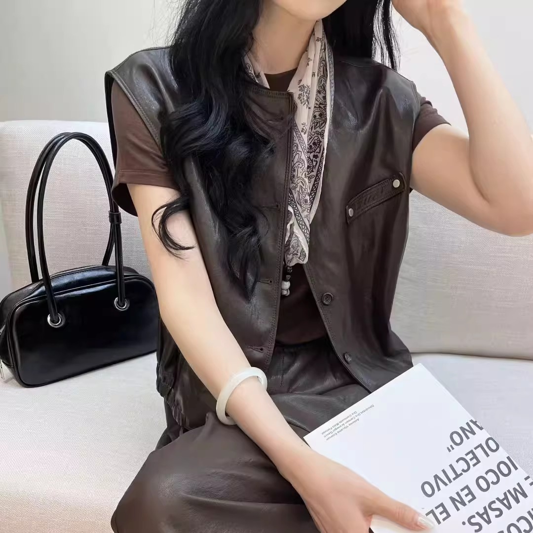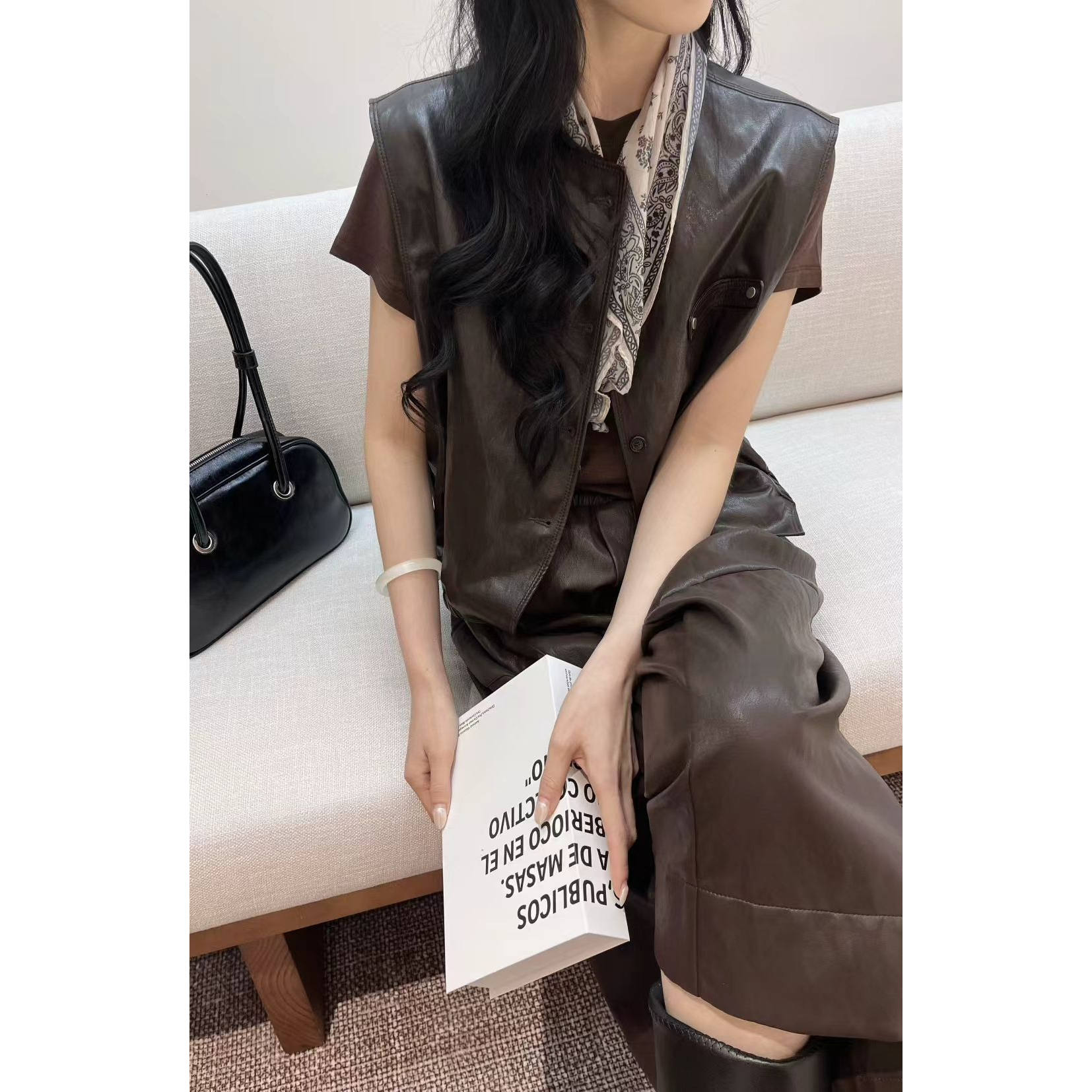 设计感叠穿马甲潮 百搭宽松显瘦时尚 韩版 小个子皮马甲女2025秋新款