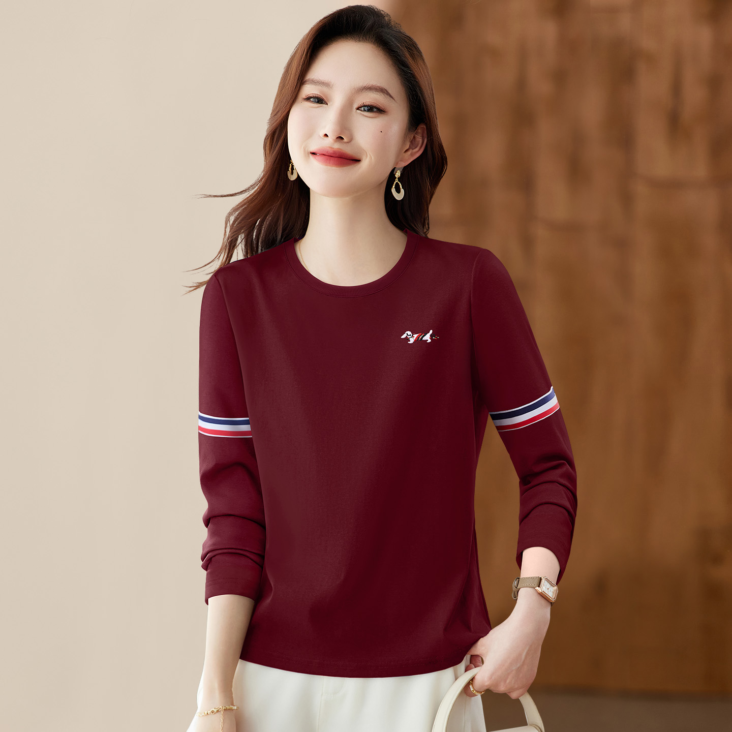 秋季 2025新款 爆款 女装 洋气外穿上衣 正肩长袖 时尚 t恤女内搭打底衫
