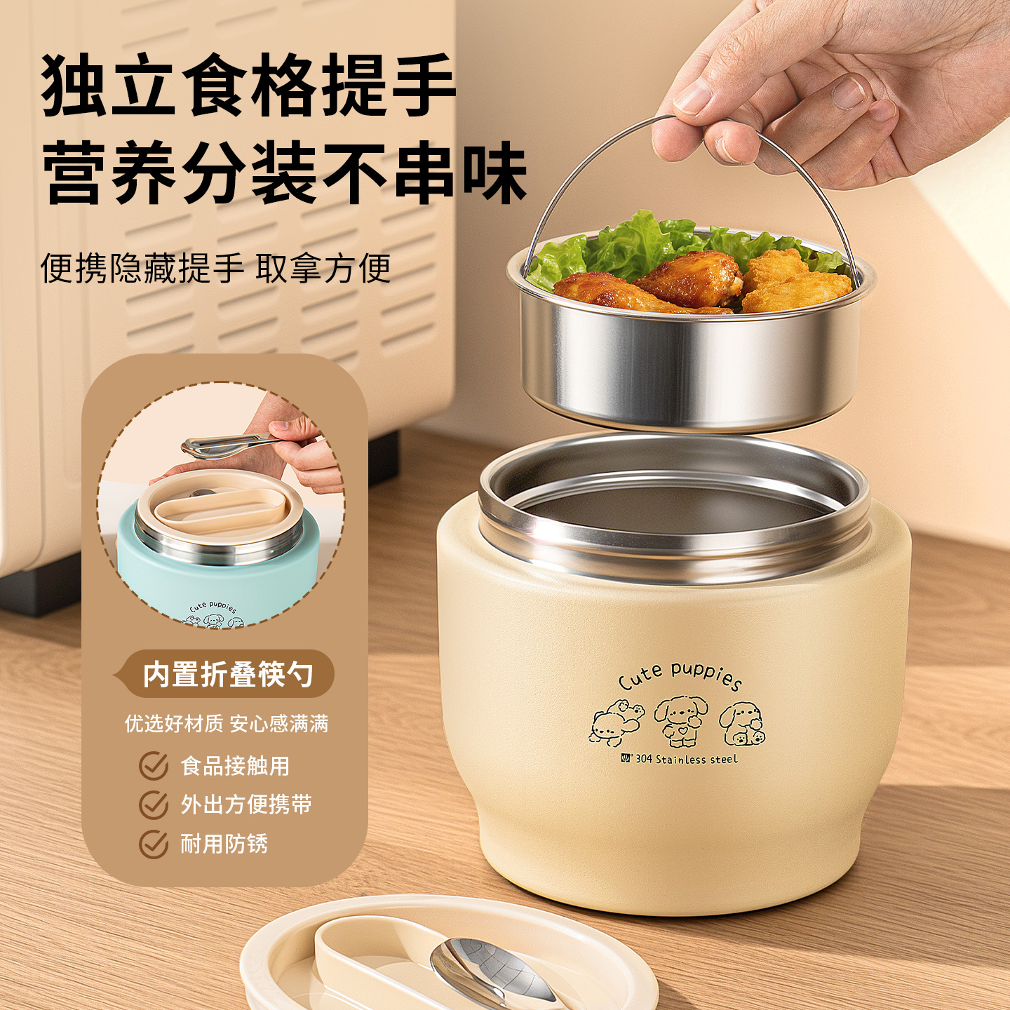 双层保温饭盒24小时超长提桶上班族带饭桶2025新款 汤壶碗 不锈钢装