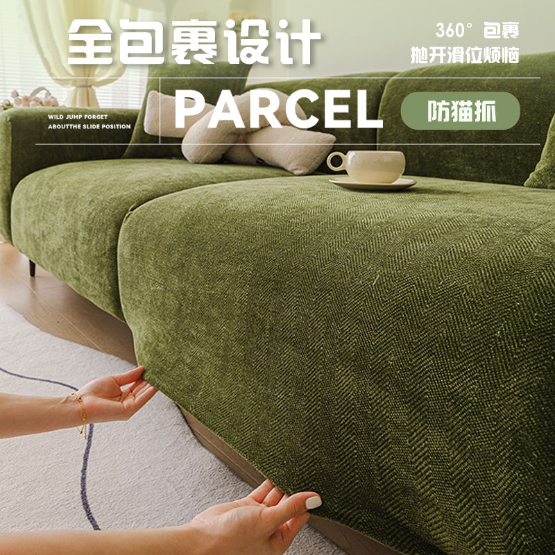 全包防滑沙发坐垫罩 通用防猫抓雪尼尔一体式 沙发套罩2025新款 四季