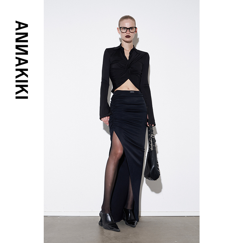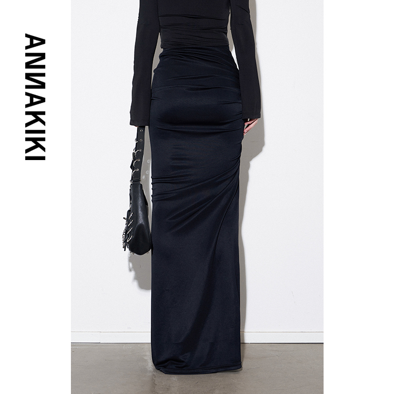 秋季 黑色半身裙女2025新款 开叉半裙设计感长裙 ET自然系列 a02