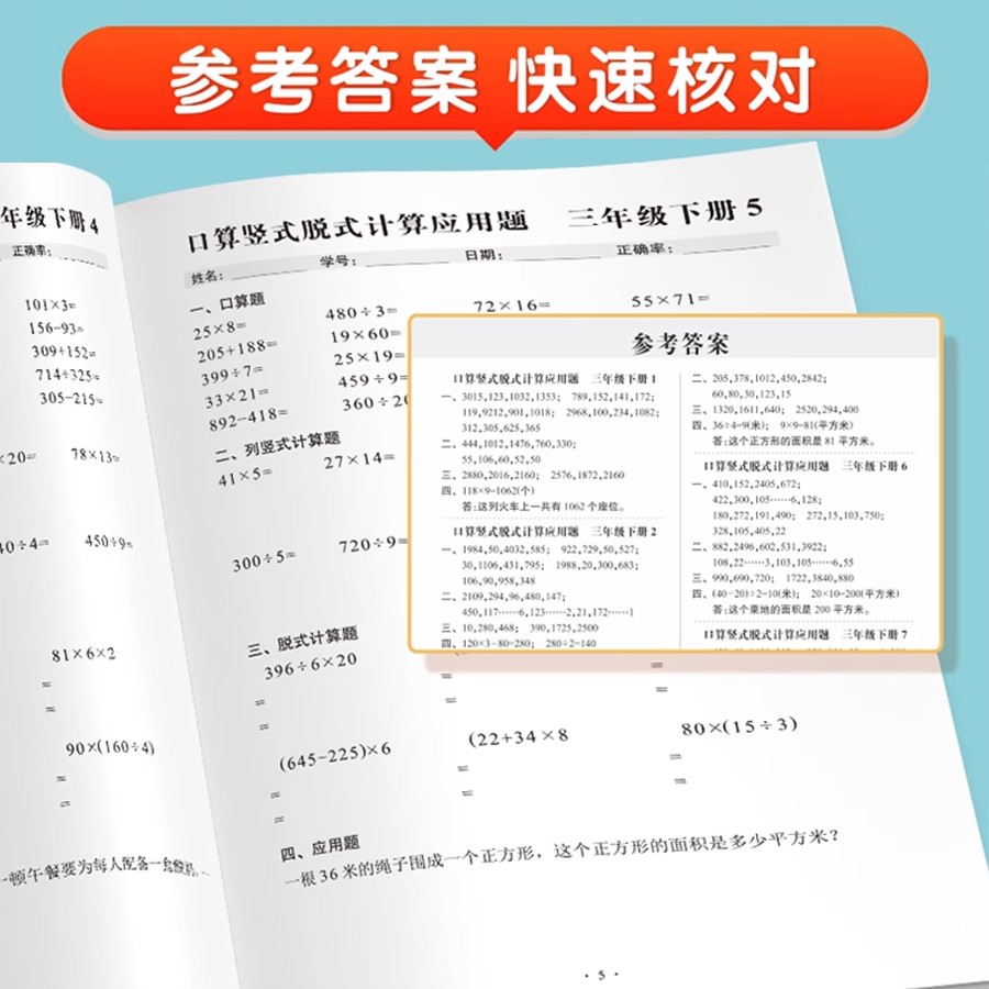 应用题思维训练同步拓展 竖式 口算题天天练人教版 一年级二年级三年级数学计算题每日一练小学上下册专项训练加减乘除法题卡列脱式