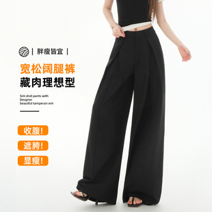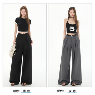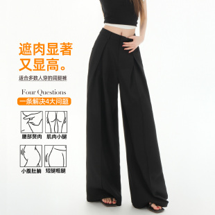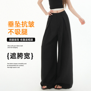 褶皱小个子高腰垂感显瘦直筒长裤 女春秋新款 阔腿裤 高级感黑色西装