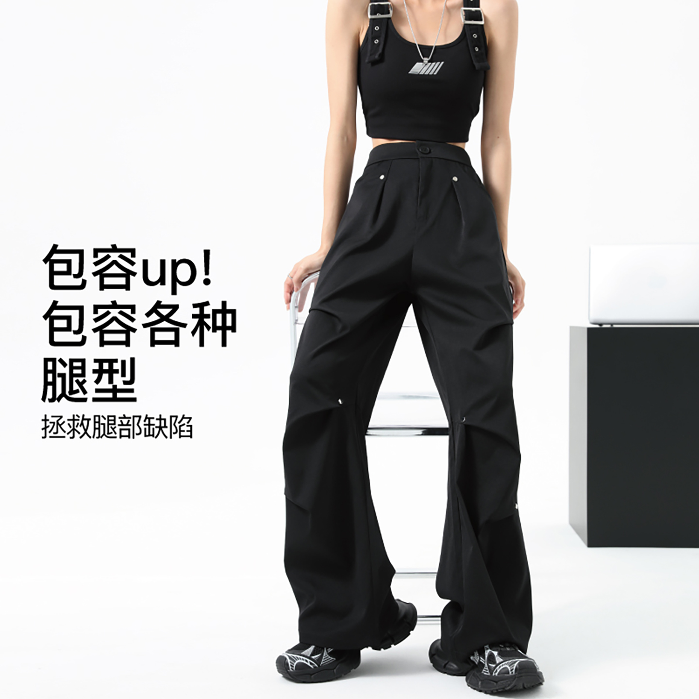 秋冬款 子女2025新款 宽松直筒垂坠感窄版 美式 铆钉工装 休闲阔腿裤 裤