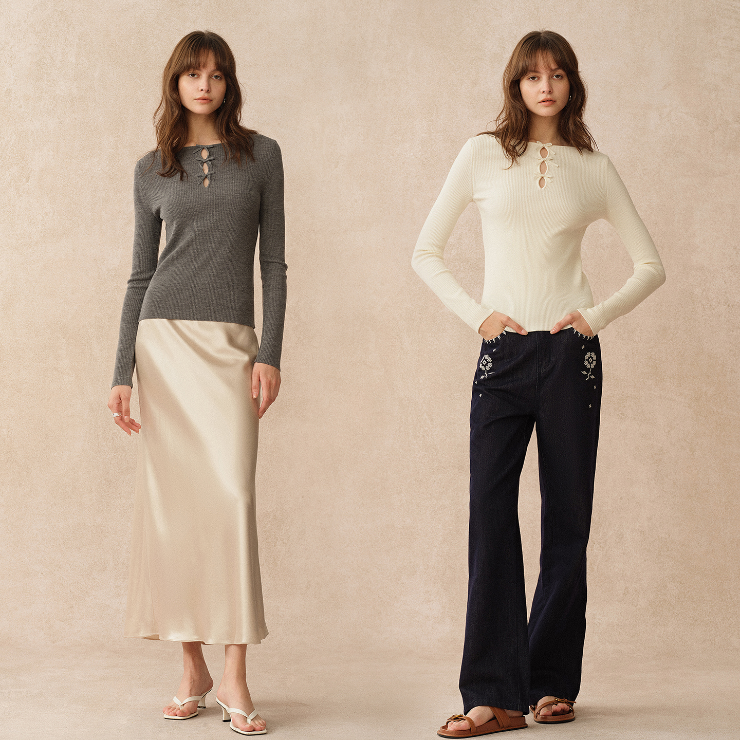 2025年秋季 针织衫 上衣 ESSENTIAL蝴蝶结气质镂空羊毛法式 Fabrique