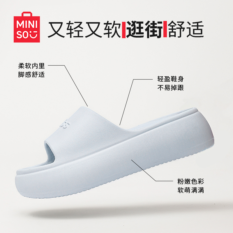 时尚 小个子女生增高逛街舒适学生拖鞋 凉拖 松糕厚底拖鞋 MINISO夏季