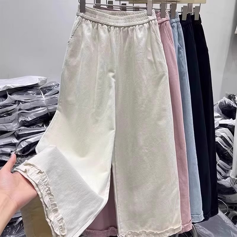 宽松高腰垂感直筒裤 清仓捡漏 薄款 女夏季 蕾丝木耳花边九分阔腿裤