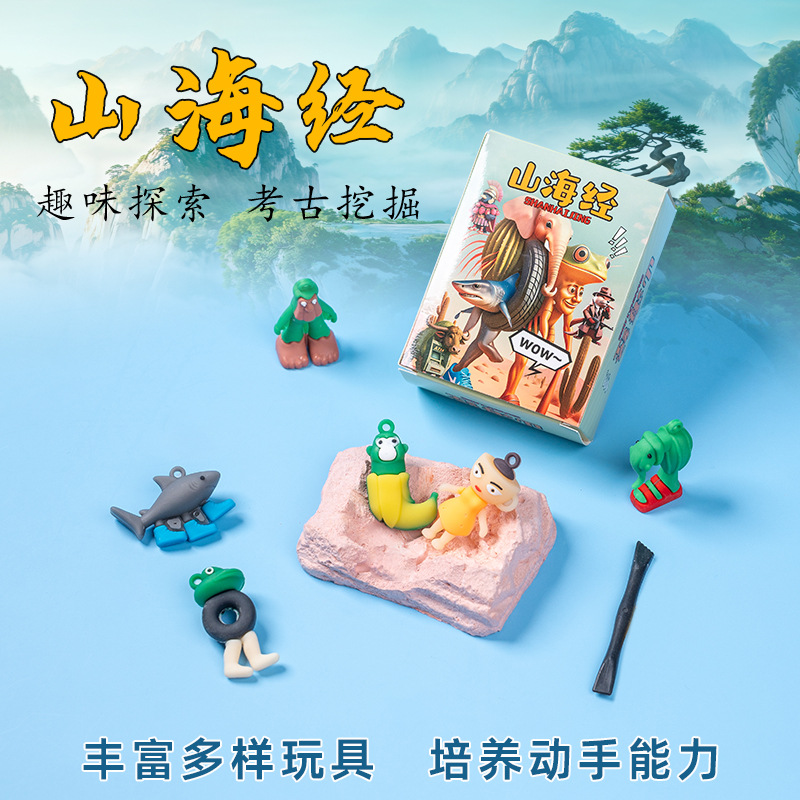 ai外国山海经考古挖掘玩具儿童挖宝石寻宝藏盲盒男女孩手工挖石膏