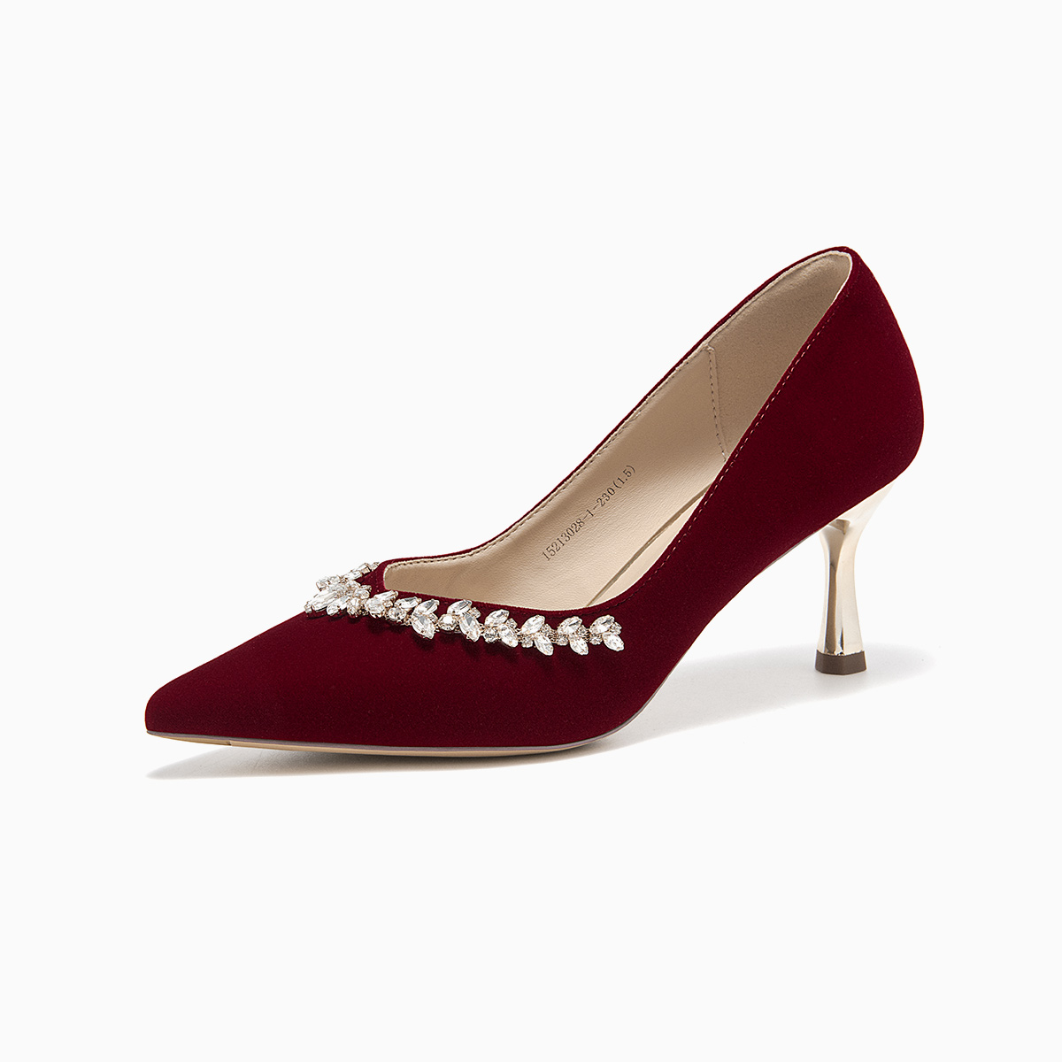宽楦羊皮尖头细跟通勤浅口单鞋 大码 黑松露 秋冬女鞋 7or9黑色高跟鞋