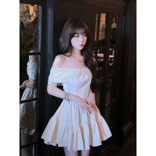 高级感泡泡袖 复古方领白色仙女连衣裙女夏季 茶歇雪纺长裙 法式 大码