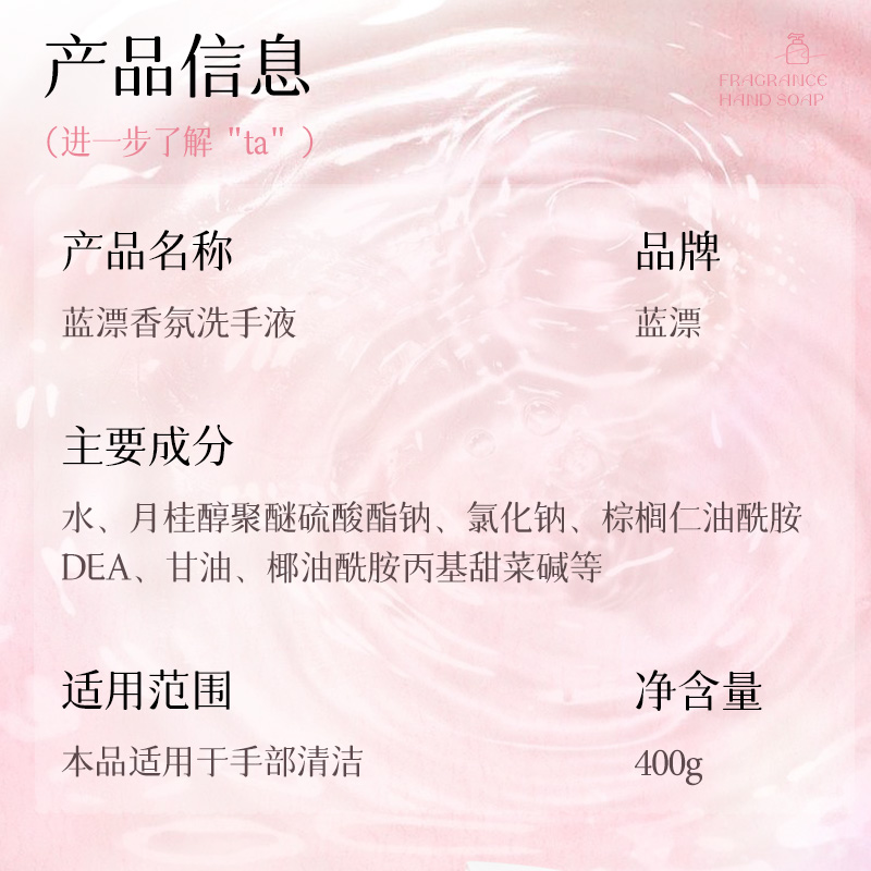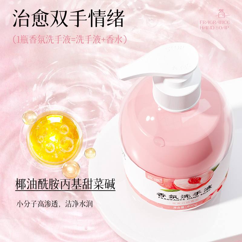 手部清洁按压便携家庭装 蜜桃香氛洗手液家用实惠装 瓶装 蓝漂400g