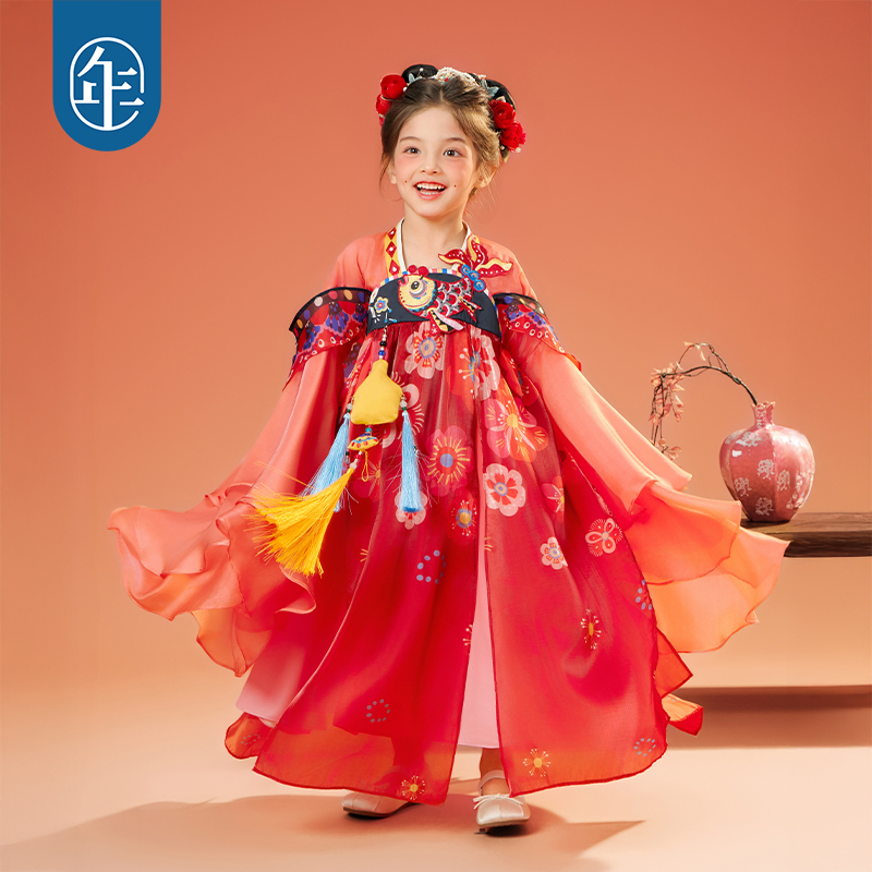 汉服裙女童秋季 古装 新款 中式 中秋节儿童礼服 重工改良唐装 年衣童装