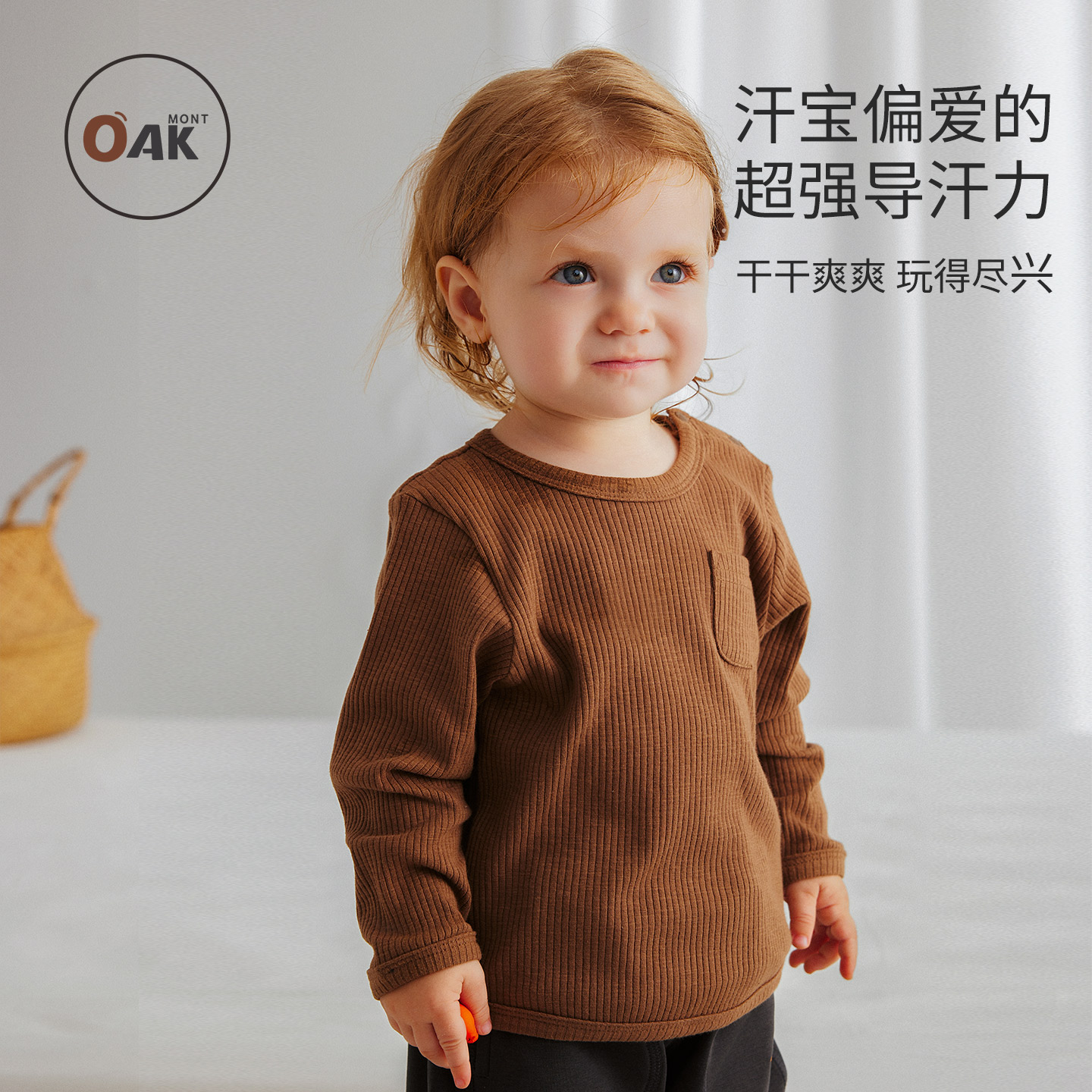 衣服 男女童竹节棉打底上衣婴幼儿宝宝a类童装 Oak mont儿童t恤长袖