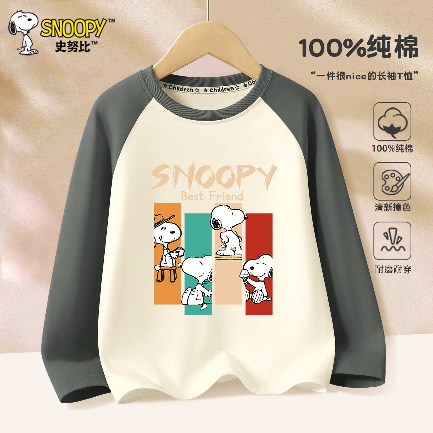 印花插肩袖 儿童中大童美式 潮 T恤纯棉2025春秋新款 多多家男童长袖