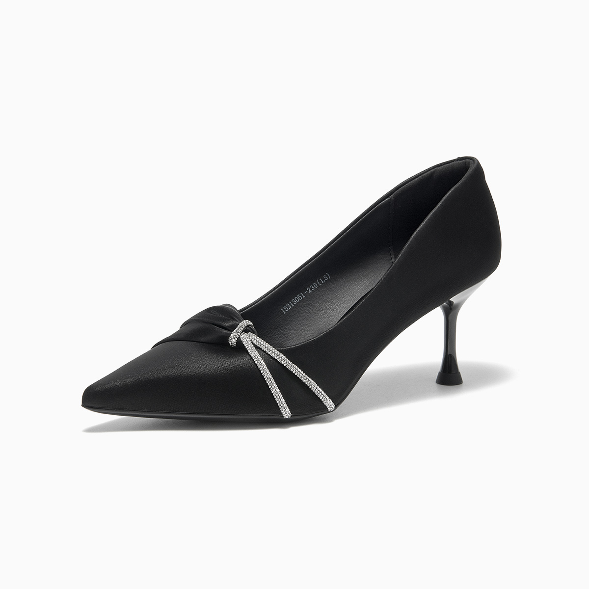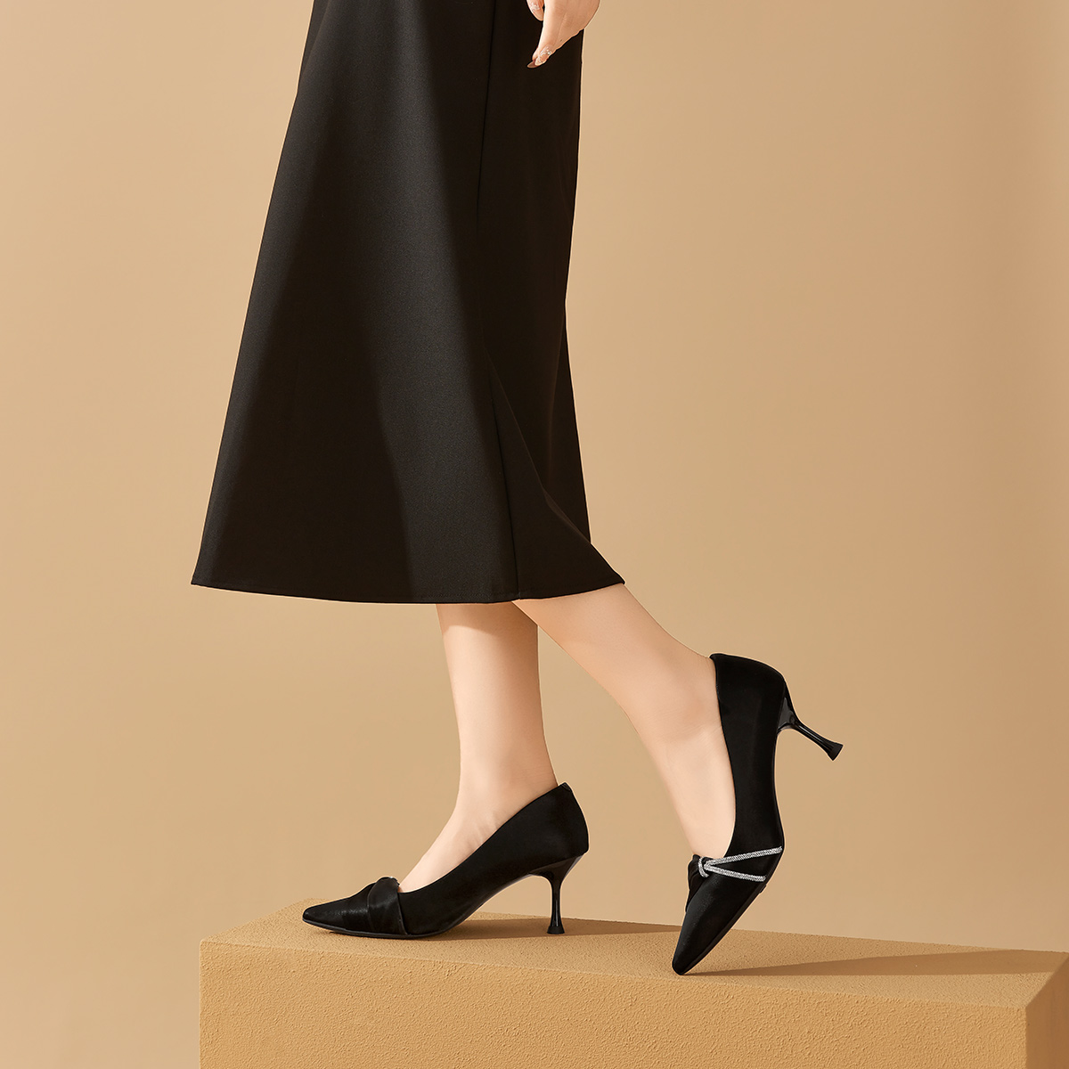 小香风尖头通勤工作浅口单鞋 法式 女2025新款 戈美其黑色细跟高跟鞋