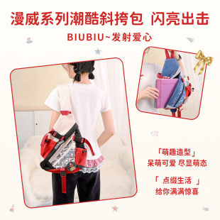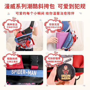 迪士尼正版 漫威英雄蜘蛛侠斜挎包大容量包包钢铁侠单肩包帆布胸包