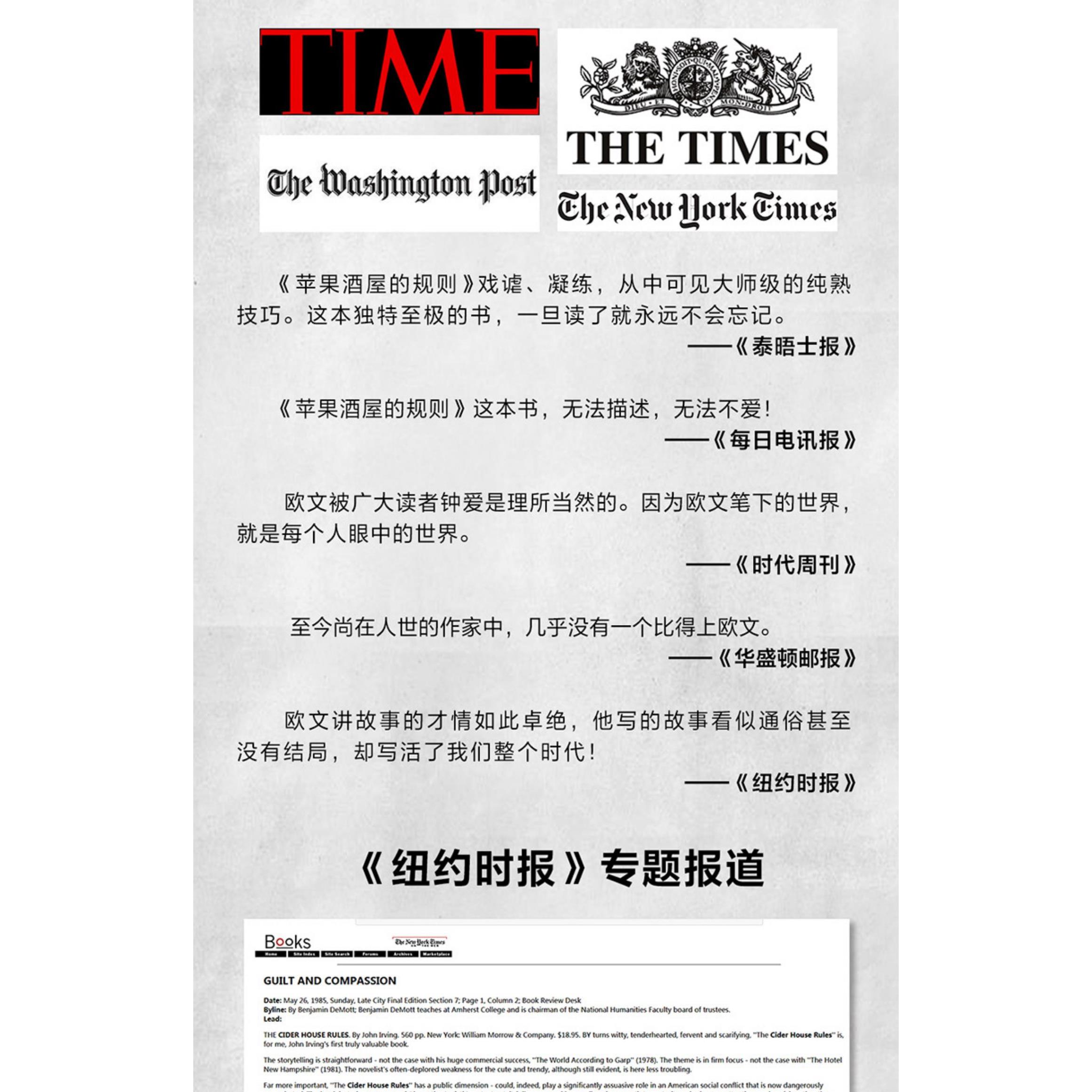 规则 约翰·欧文著 村上春树 美国国家图书奖获奖作家奥斯卡金像奖改编剧本奖得主温情小说读客经典 苹果酒屋 偶像 文库 书
