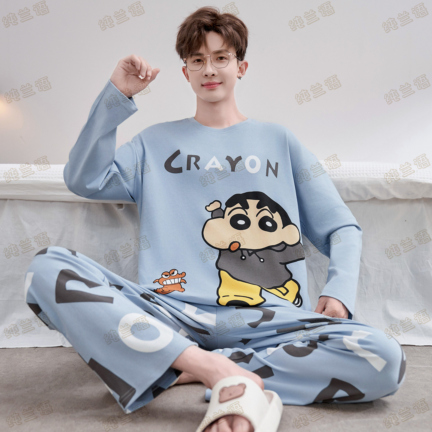 秋季 纯棉长袖 套装 睡衣男士 薄款 春秋款 秋冬季 家乐芬男款 家居服男式