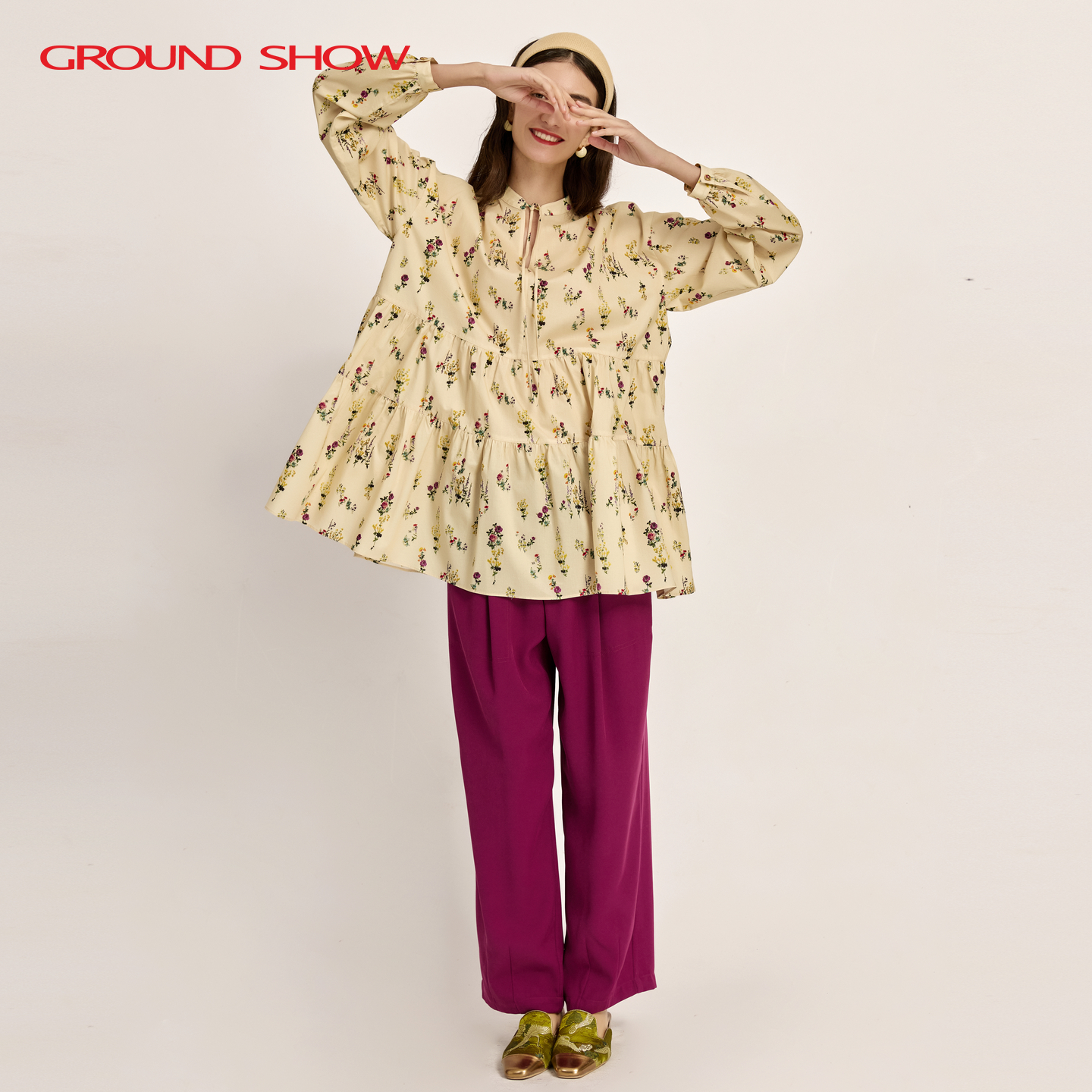 浅蓝温柔风设计感 通勤风长袖 衣纱布菲云茉2025秋新款 温柔翻领衬衫