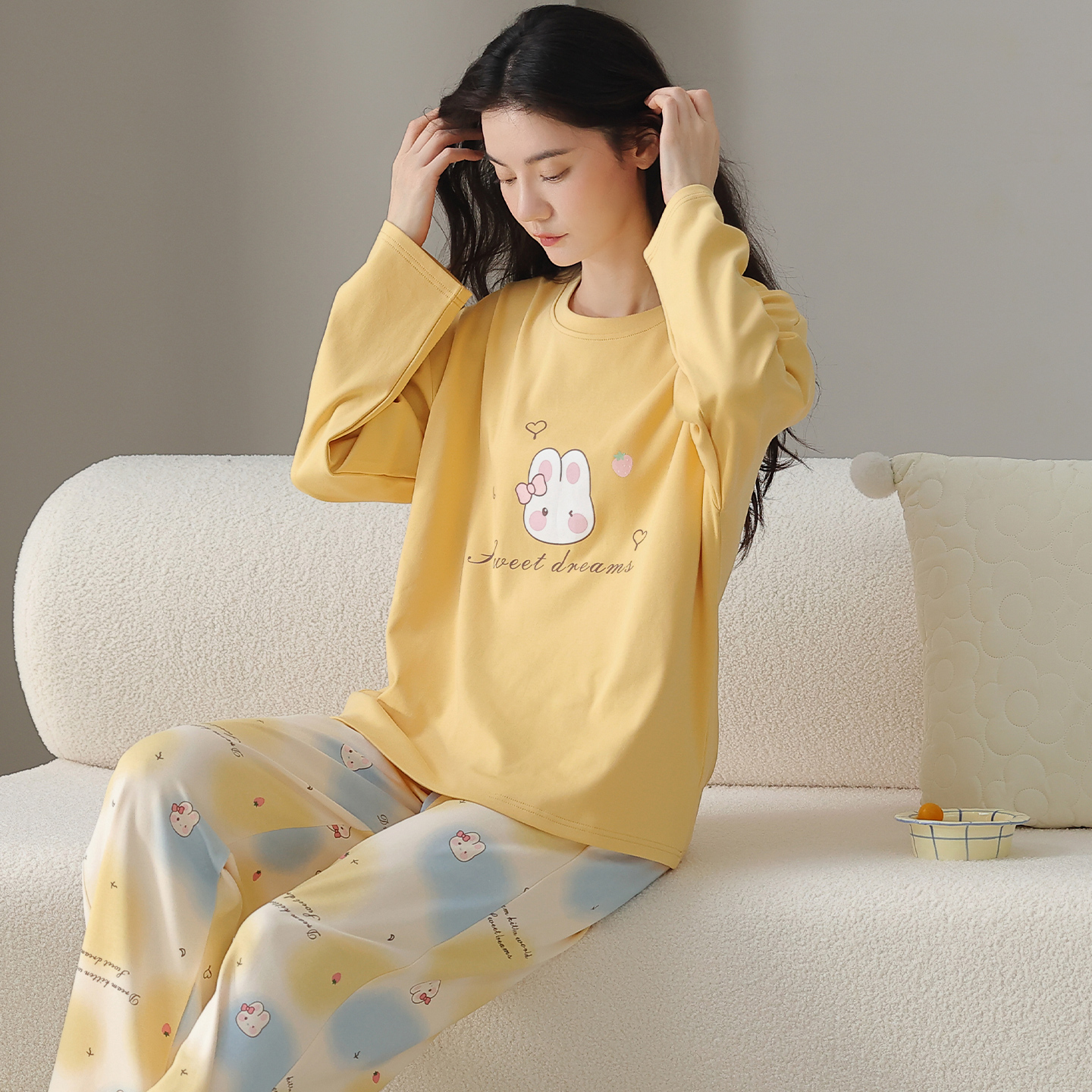 套装 睡衣女款 纯棉套头长袖 春秋季 全棉宽松可外穿家居服 2025年新款